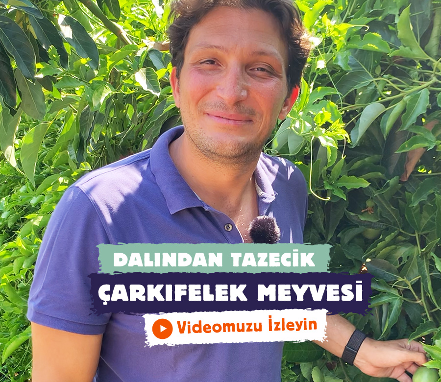 Çarkıfelek meyvesi dünyada “Passion Fruit” olarak bilinen egzotik bir meyvedir. Haziran ayı sonunda olgunlaşır ve Eylül ayı sonuna kadar hasat edilir. Önemli özelliklerinden biri rahatlatıcı, sakinleştirici etkisi olmasıdır. Çekirdekli bir yapıya sahiptir. Kış-ilkbahar döneminde ekşi-mayhoş; yaz-sonbahar döneminde ise tatlı- mayhoş bir lezzete sahiptir.