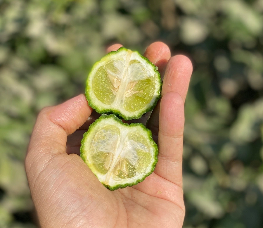Dünya mutfağının gözdelerinden biri olan Kaffir Lime’ı Finike’deki bahçelerimizde iyi tarım uygulamaları ve biyolojik mücadele ile sizler için yetiştiriyoruz. Gurme bir lezzet olan Kafromi Kaffir Lime, özellikle Uzakdoğu mutfağının olmazsa olmazlarından biridir.