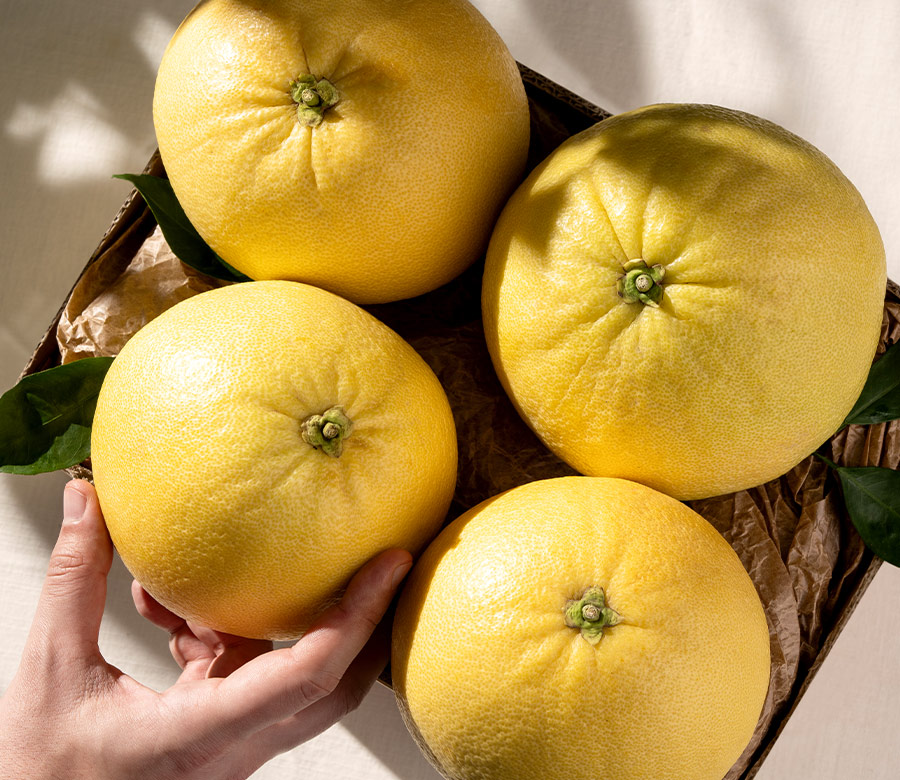 Şadok, Finike'deki bahçelerimizin farklı, kendine özgün bir lezzetidir. Ortalama 15- 30 cm'lik çaplarda yetişir. Şadok'larımızı kabuğuyla dilimleyip, meyvesinin dış zarı soyarak tüketmelisiniz. Şadok meyvesinin kabuğu kalın, su oranı ise kısmen azdır. Et kısmı tatlı - acı lezzette olur. Çekirdekli bir cinstir. Reçeli ve marmelatı da yapılır; özel sofralarda, ikramlarda afiyetle tüketilebilir. Özellikli bir lezzettir ve çok sınırlı bir üretimi bulunur.